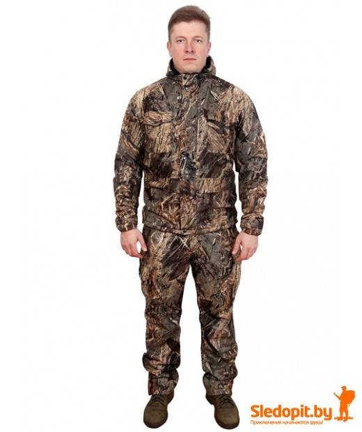 Отличительной особенностью костюма DUCK EXPERT Универсал 2 является использование в качестве внутренней подкладки куртки и брюк теплого и мягкого флиса плотностью 130 г\м., который служит утеплителем куртки и брюк, благодаря чему в костюме тепло и удобно находится в состоянии покоя до +5 - +10С , а активно передвигаться при температуре до 0 градусов с учетом использования термобелья и флисовой куртки либо свитера. Данный тип флиса отлично сохраняет тепло и при этом пропускает пары влаги дальше к мембранной ткани верха, которая в свою очередь хорошо выводит влагу изнутри наружу, благодаря чему даже при большой активности Вы остаетесь сухим!!!