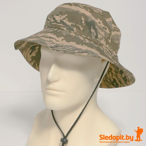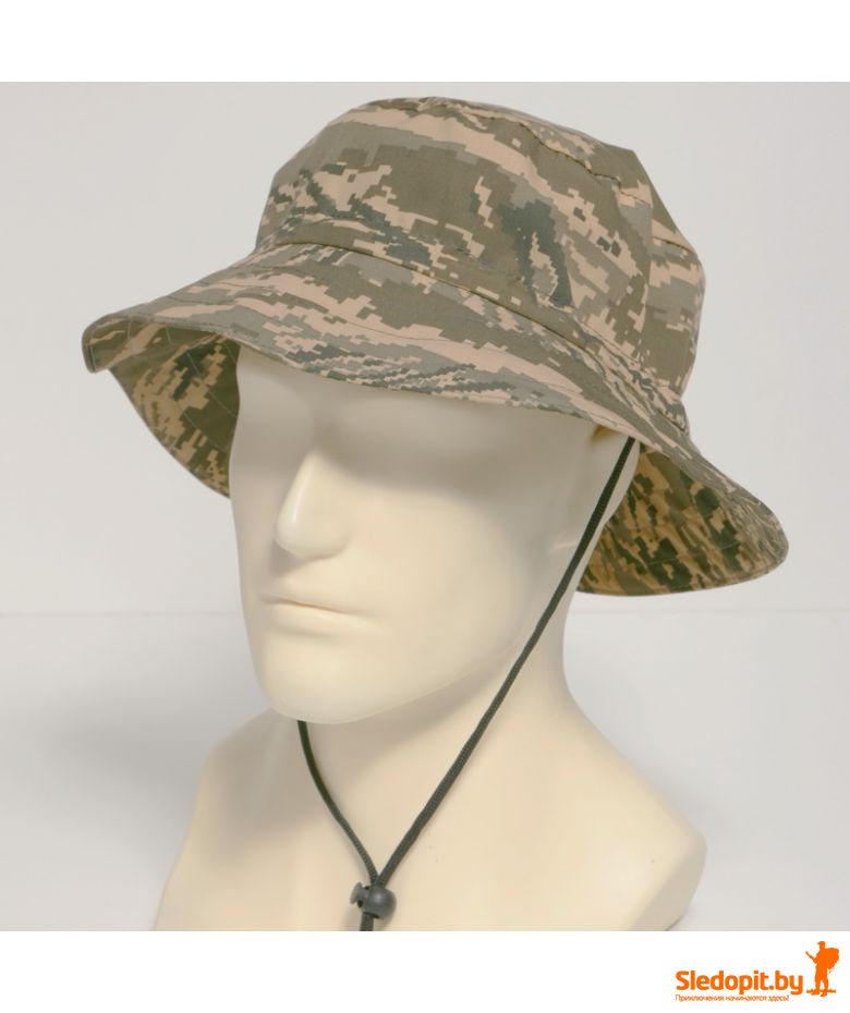 Легкая, удобная летняя мужская панама с утяжкой для фиксации на подбородке. Размер универсальный - сзади регулировка резинкой со стопором. Камуфляжная панама быть использована как шляпа поля вверх или как панама поля опущены вниз, фиксатор утяжка позволяет фиксировать поля в обоих направлениях. Очень удобная панама мужская для охоты и рыбалки, также активного отдыха. Панама камуфляж отлично подходит для использования с накомарником в период активности насекомых.