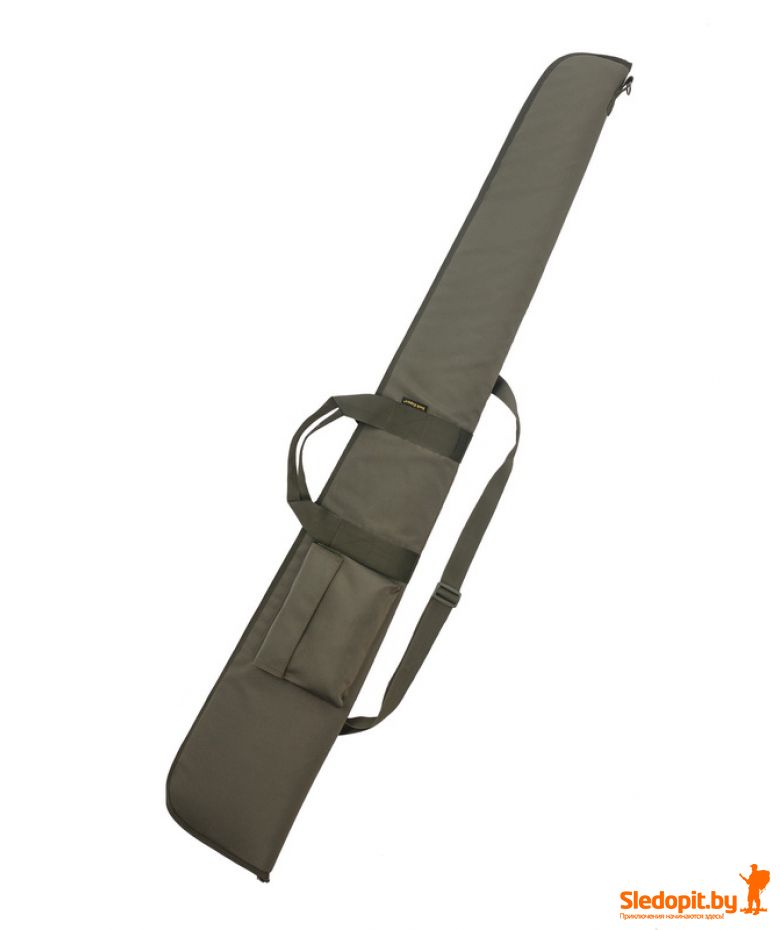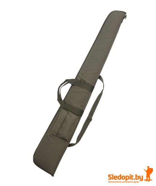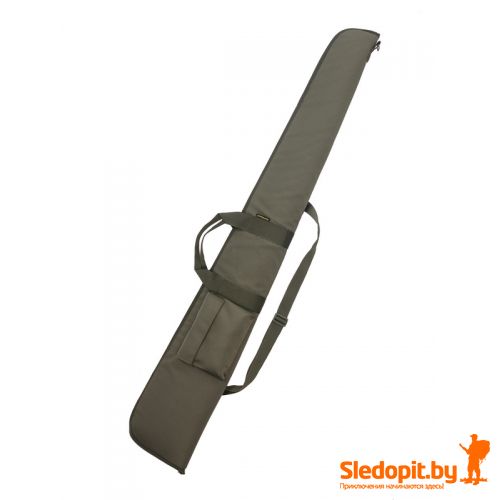 Чехол для оружия имеет прочные ручки для переноски изготовлены из прочной полиэстровой стропы, не допускающим гниения и растягивания при эксплуатации. На лицевой стороне чехла размещен карман имеющий три держателя для чоков. Чехол имеет регулируемую по длине лямку с удобным погоном для переноски ружья на плече. На конце чехла располагается петля из пластика для подвеса на крючок. Закрывается/открывается чехол по всей длине благодаря надежной молнии, что позволяет при необходимости раскрывать чехол для просушки ружья, к примеру если Вы охотились в дождь и Ваше ружье намокло.