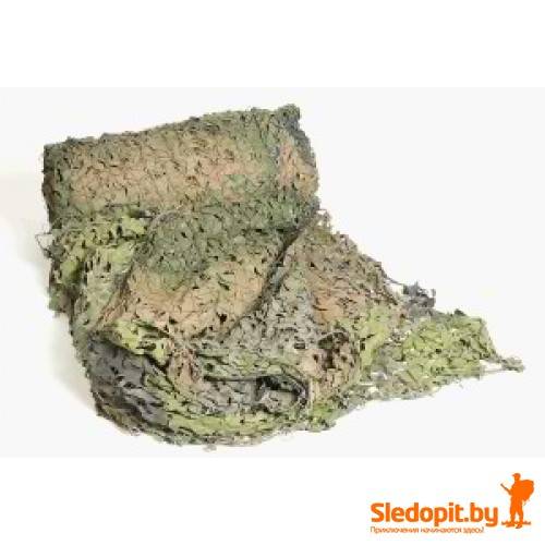 Маскировочная сеть камуфляжной расцветки предназначена для создания засидок во время охоты на птиц и зверей. Сетка изготовлена из прочного и легкого синтетического материала. Нашитые на сетку лоскуты ткани обеспечивают полное слияние с листвой.