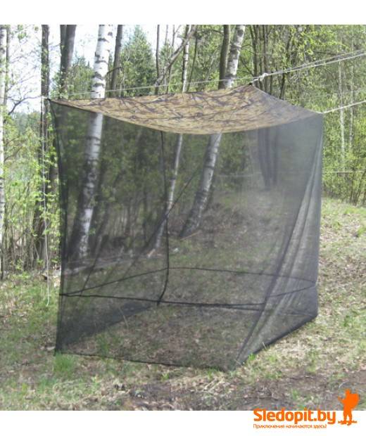 Имея минимальные размеры и не имея каркаса в транспортном положении данная противомоскитная палатка помещаемся в небольшой чехол и занимает минимум места в рюкзаке или багажнике машины. Однако в собранном состоянии благодаря своим большим размером 2х2х2м данная противомоскитная палатка может быть использована как полевая кухня, столовая, место игры и сна детей.