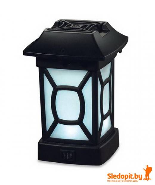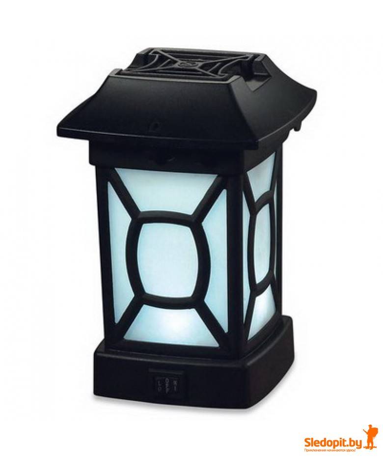 Устройство имеет высокую эффективность, до 98% летающих насекомых, таких как комары, мошки не подлетят к вам в пределах площади 4,5х4,5 метра. Такой прибор работает по принципу фумигации (отпугивания за счет синтетических или натуральных запахов) и может работать как декоративный фонарь для Вашего загородного участка.