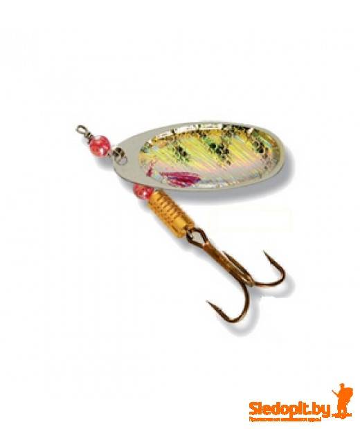 Новая вращающаяся блесна классической листовидной формы имеющая яркую голографическую расскраску выполненную в виде окунька. Именно благодаря этим особенностям данная блесна прекрасно работает даже в тех водоемах, где рыба из-за большого наплыва рыболовов стала крайне осторожной.