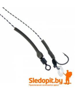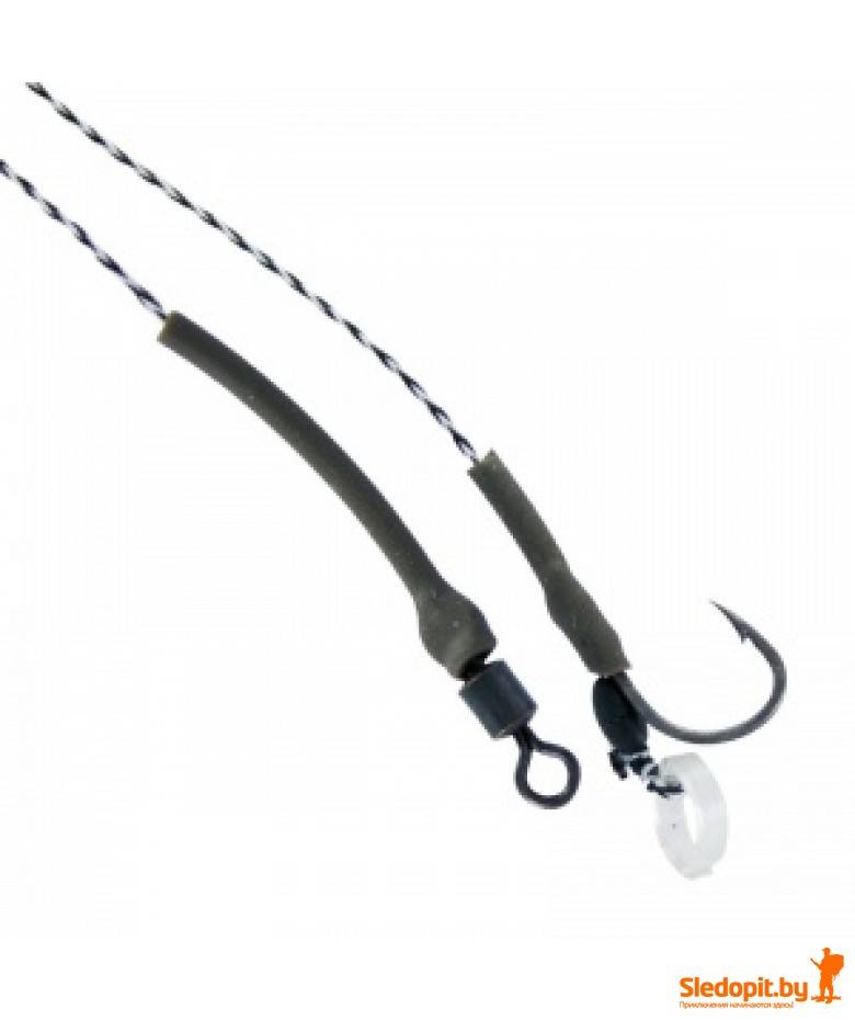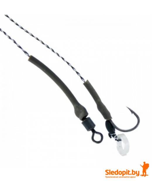 Этот карповый поводок выполнен из очень мягкого и гибкого материала, имеет крючек 4 размера с силиконовым кольцом для крепления бойла или приманки и вертлюжок для крепления к снасти.