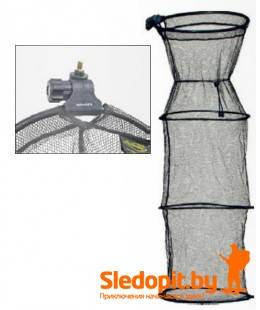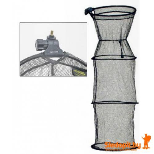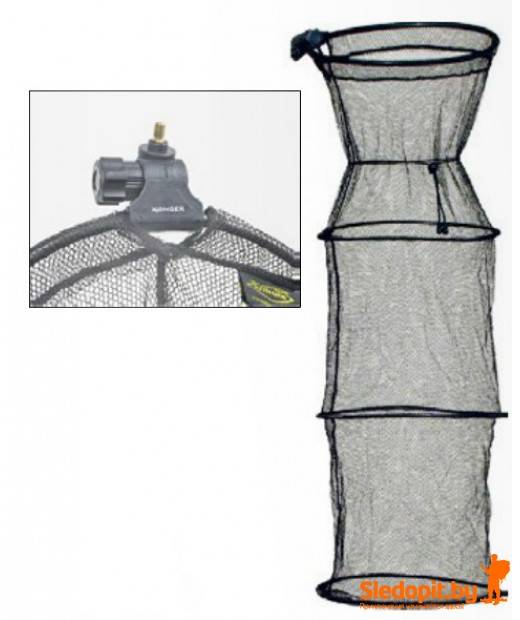 Практичный садок для хранения живой рыбы. Изготовлен из современной, высококачественной синтетической ткани, которая не впитывает неприятных запахов и легко чистится. Имеется держатель для стойки со стандартной резьбой.