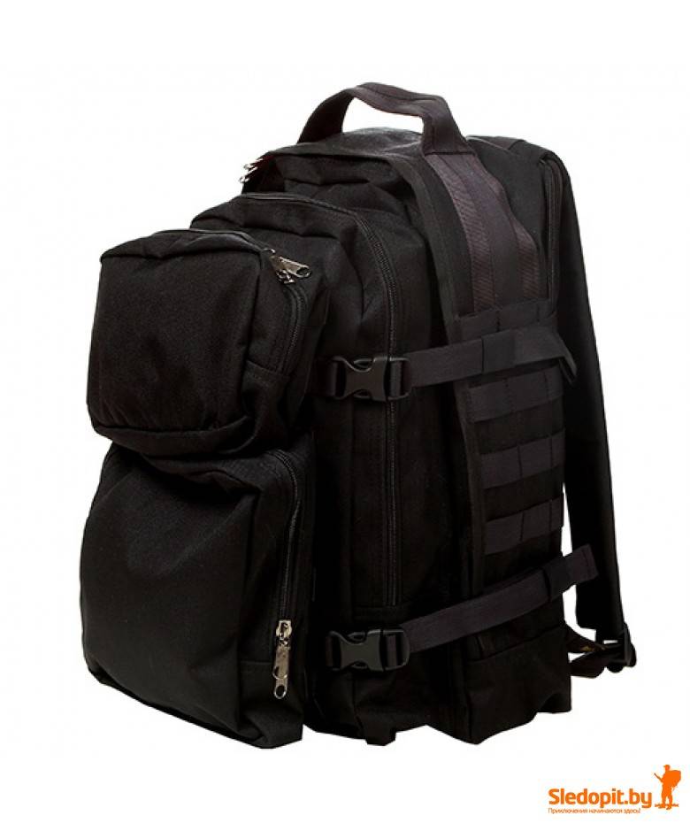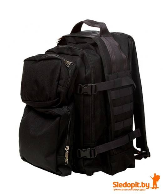 Два внешних навесных подсумка крепятся на системе MOLLE и легко снимаются и устанавливаются по мере необходимости. Данный рюкзак может использоваться для ношения его в городе в качестве повседневного EDC рюкзака для любителей стиля "милитари". Рюкзак имеет отделение и выходы для питьевой системы, которые позволяют в случае необходимости переносить в этом отделении стандартный ноутбук, причем вшитая в спинку защитная пена надежно защитит его от повреждений.
