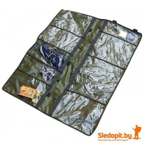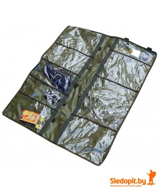 При необходимости в одно движение органайзер раскрывается и Вы моментально получаете доступ к отсекам с их содержимым. Походный органайзер выполнен из влагоустойчивой ткани, все отсеки-окошки надежно и герметично прошиты, доступ внутрь осуществляется через клапан на контактной ленте, который в свою очередь надежно защищает содержимое от грязи, пыли и влаги.