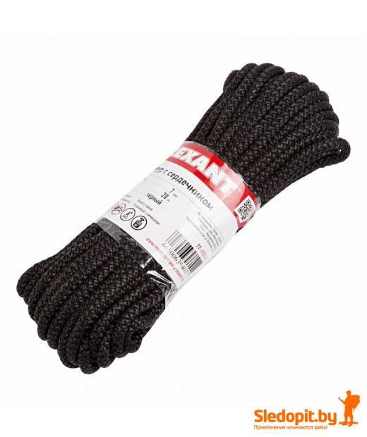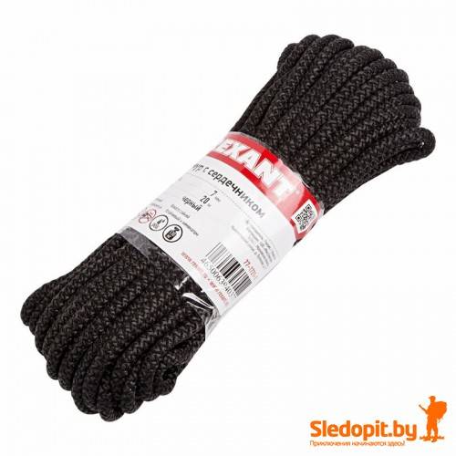Шнур вязаный полипропиленовый с сердечником черный 8мм 20м