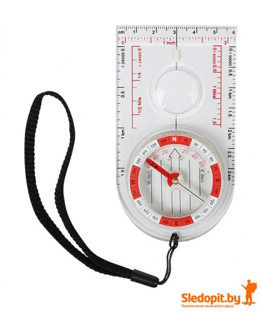 - На стрелку и шкалу нанесены люминесцентные точки, для использования компаса в темное время суток и при слабом освещении